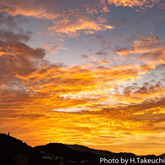 最初は、山に近い雲から赤色に焼けていき、時間が経つほど、高い位置にある雲も焼けていった。